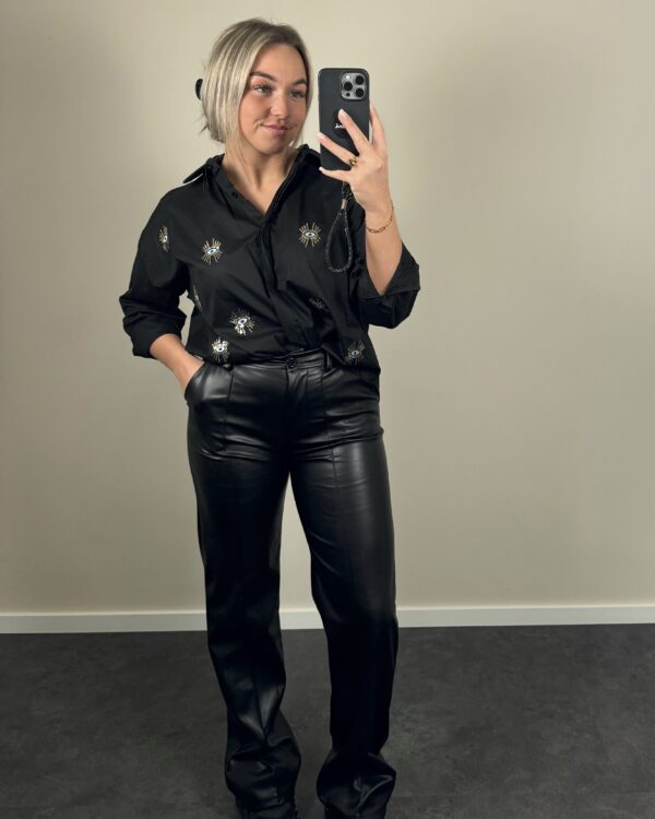 Model Sarah is 163 cm en draagt maat S. Blouse valt op maat.